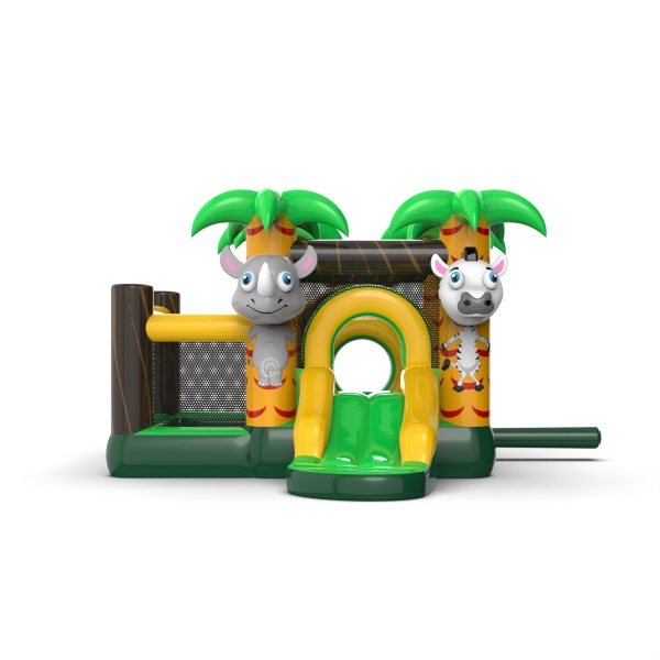 Un petit château gonflable avec une piscine sèche sur le thème de la jungle est l'endroit idéal pour sauter joyeusement et jouer en plein air. Le design coloré et le motif animalier encouragent les enfants à s'activer et à créer des souvenirs inoubliables avec leurs amis. C'est le choix idéal pour les anniversaires, les festivals et autres événements où les enfants peuvent se défouler dans un environnement sûr.