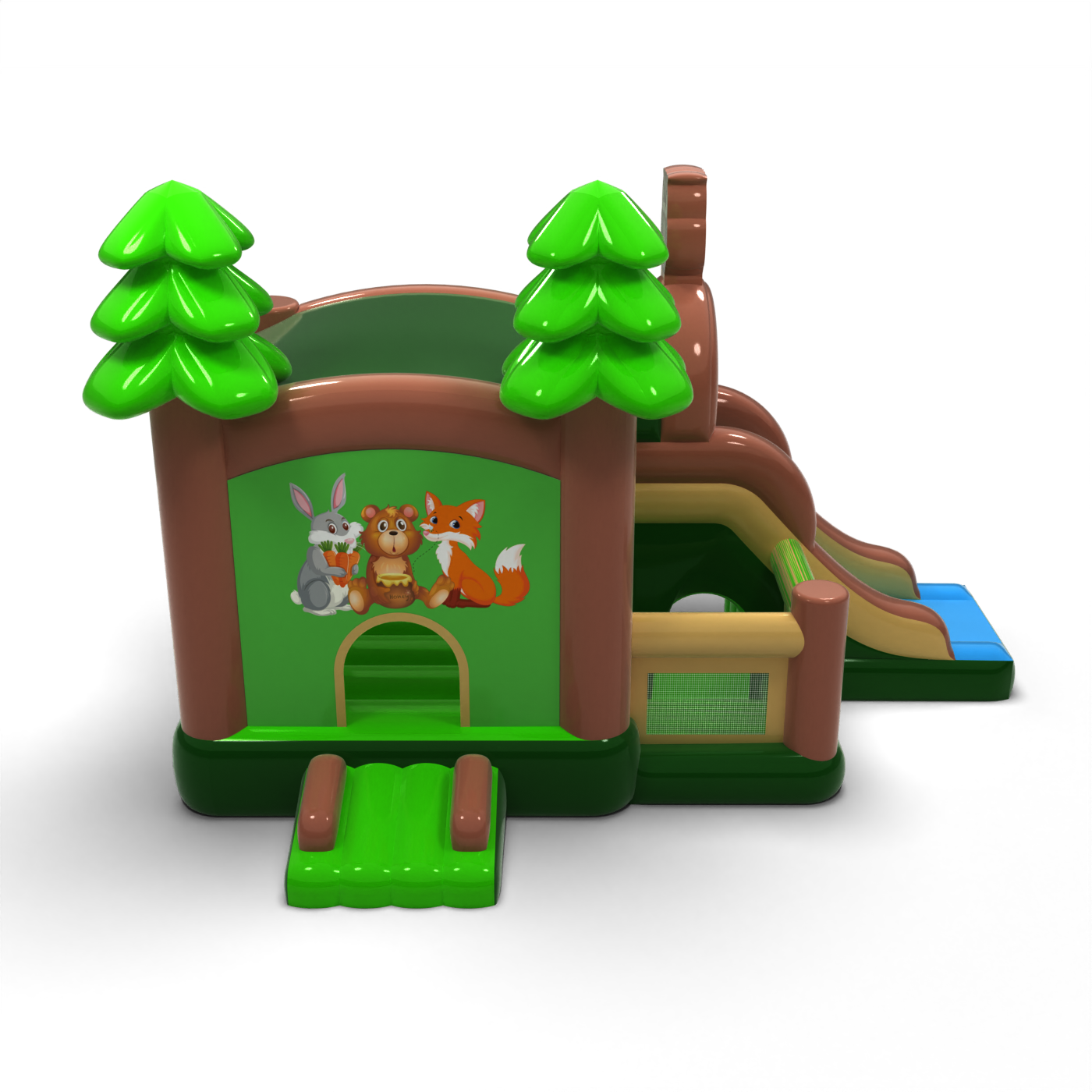 Le château gonflable Forest Combo est une merveilleuse attraction qui invite les enfants à explorer la beauté de la nature dans un environnement sûr et convivial. Entouré d'arbres verts et de plantes colorées, ce château gonflable encourage les enfants à jouer activement, à sauter et à interagir avec leurs camarades. C'est le choix idéal pour les événements en plein air qui combinent l'amusement avec l'apprentissage de l'écologie et de la nature, créant des moments inoubliables pleins de sourires et d'imagination !