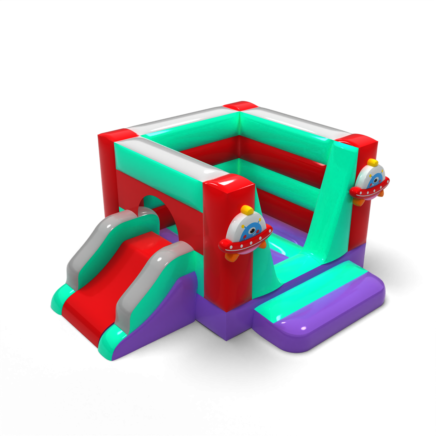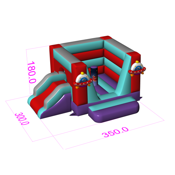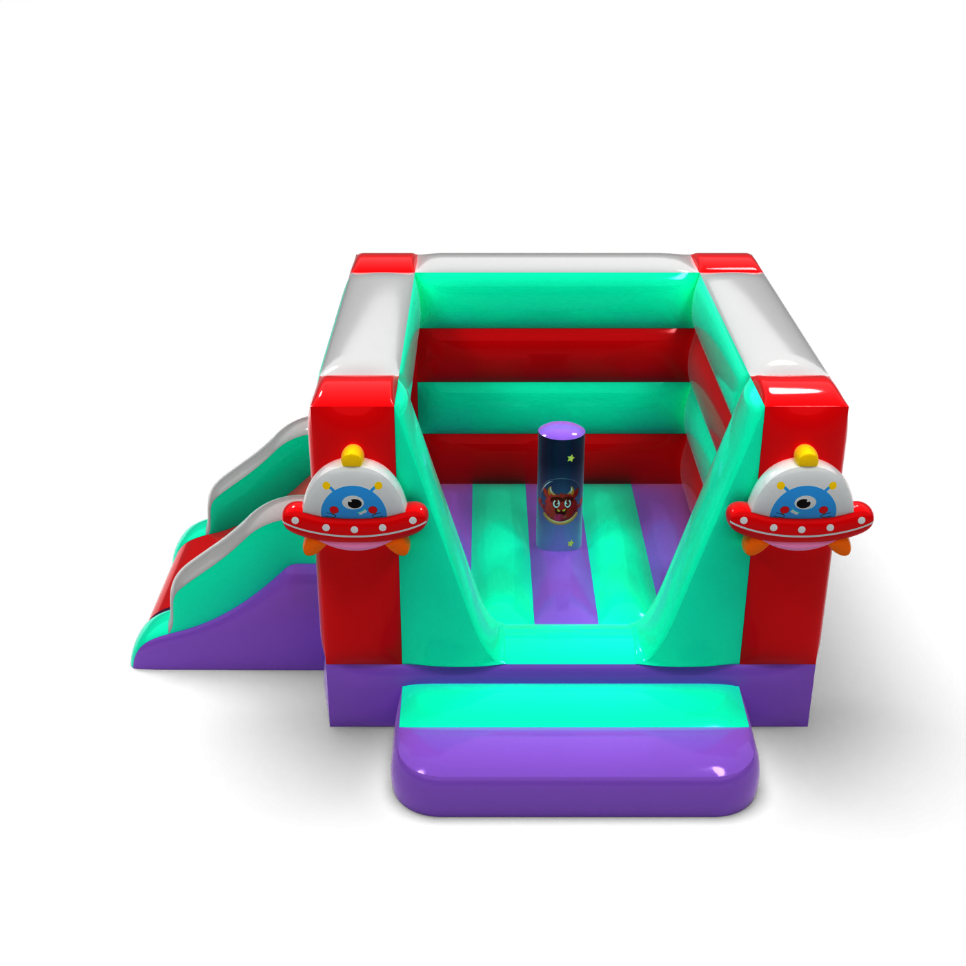 La version du château gonflable de l'espace avec toboggan est une attraction supplémentaire qui prolonge le temps de jeu et encourage l'activité physique. Les éléments colorés et les motifs de soucoupe volante créent une atmosphère accueillante, et la taille compacte permet de l'installer aussi bien à l'extérieur qu'à l'intérieur. Il s'agit d'une solution pratique pour l'industrie HoReCa et les organisateurs d'événements qui souhaitent offrir aux enfants un espace de jeu attrayant et sûr. Il s'agit d'un point focal moderne qui peut être facilement adapté à différents scénarios d'événements.