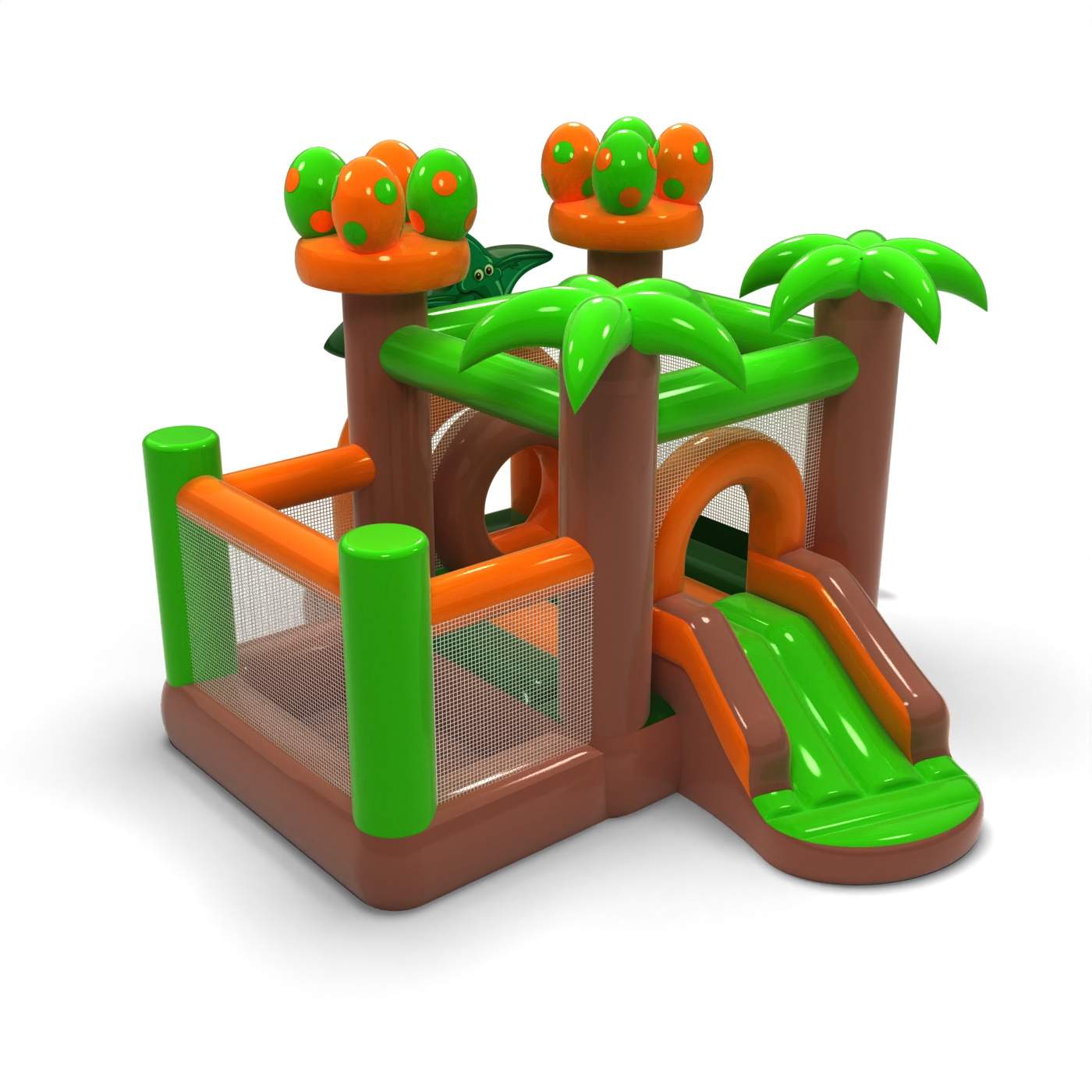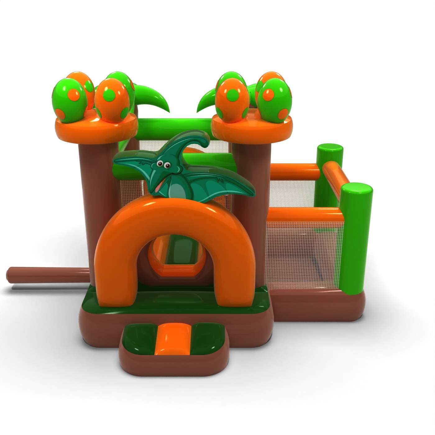 Cette petite structure gonflable sur le thème des dinosaures a été conçue pour permettre aux plus jeunes enfants de jouer en toute sécurité. Le bassin sec combiné à la zone de saut offre aux tout-petits une liberté de mouvement et un sentiment de confort. La forme conviviale et la faible hauteur permettent aux animateurs et aux soignants de contrôler facilement le jeu. Il s'agit d'un complément pratique à l'offre d'événements destinés aux familles avec de jeunes enfants. L'attraction est parfaite pour les pique-niques, les événements préscolaires et les fêtes familiales intimes.
