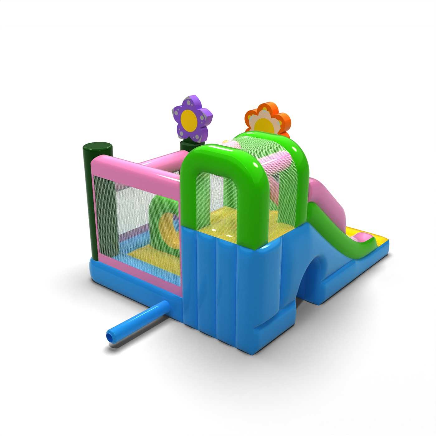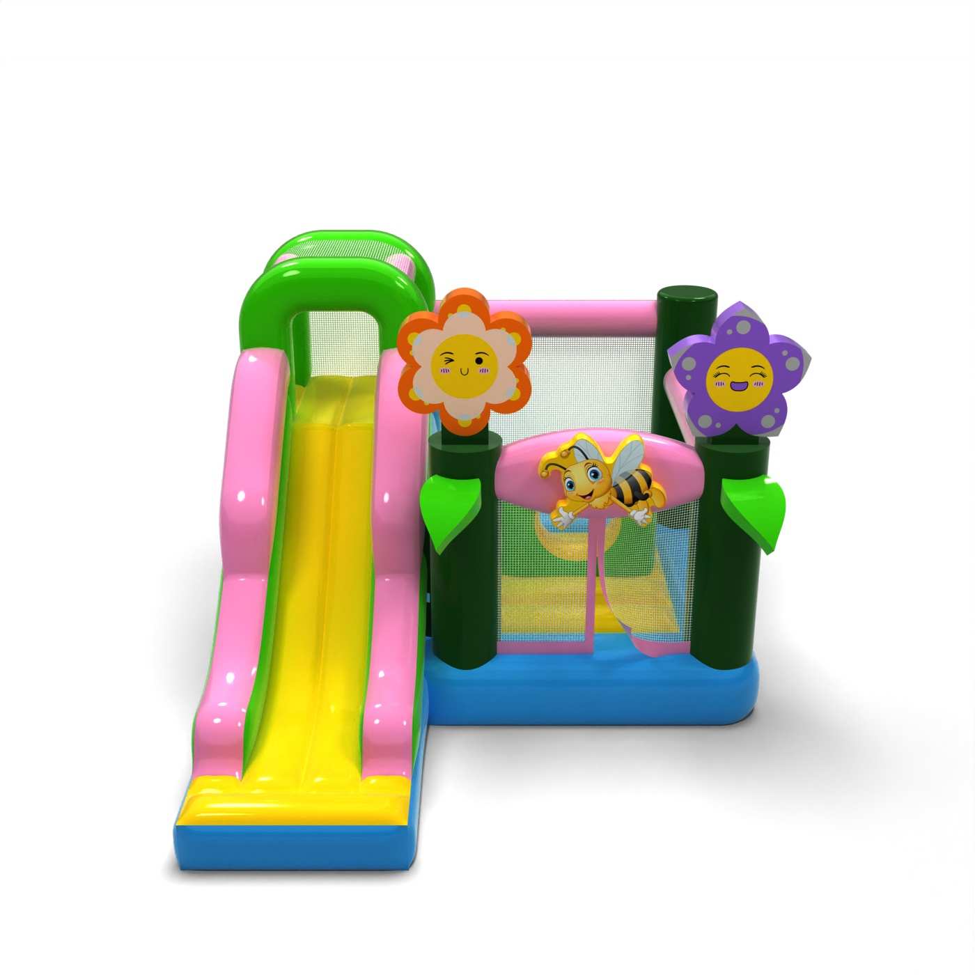L'atmosphère printanière et le design pastel confèrent à cette attraction un caractère léger et joyeux, idéal pour les jeunes participants. La combinaison de sauts et de toboggans ajoute de la variété à l'amusement et permet aux enfants d'être actifs sans être monotones. Les motifs graphiques naturels apportent une atmosphère fraîche et s'intègrent bien aux événements en plein air. Il s'agit d'une option pratique pour les sociétés de location à la recherche d'une structure gonflable polyvalente pour la saison printemps/été. Le modèle fera ses preuves lors de festivals, de pique-niques et d'animations familiales, où la légèreté de la forme et une atmosphère conviviale et amusante sont importantes.