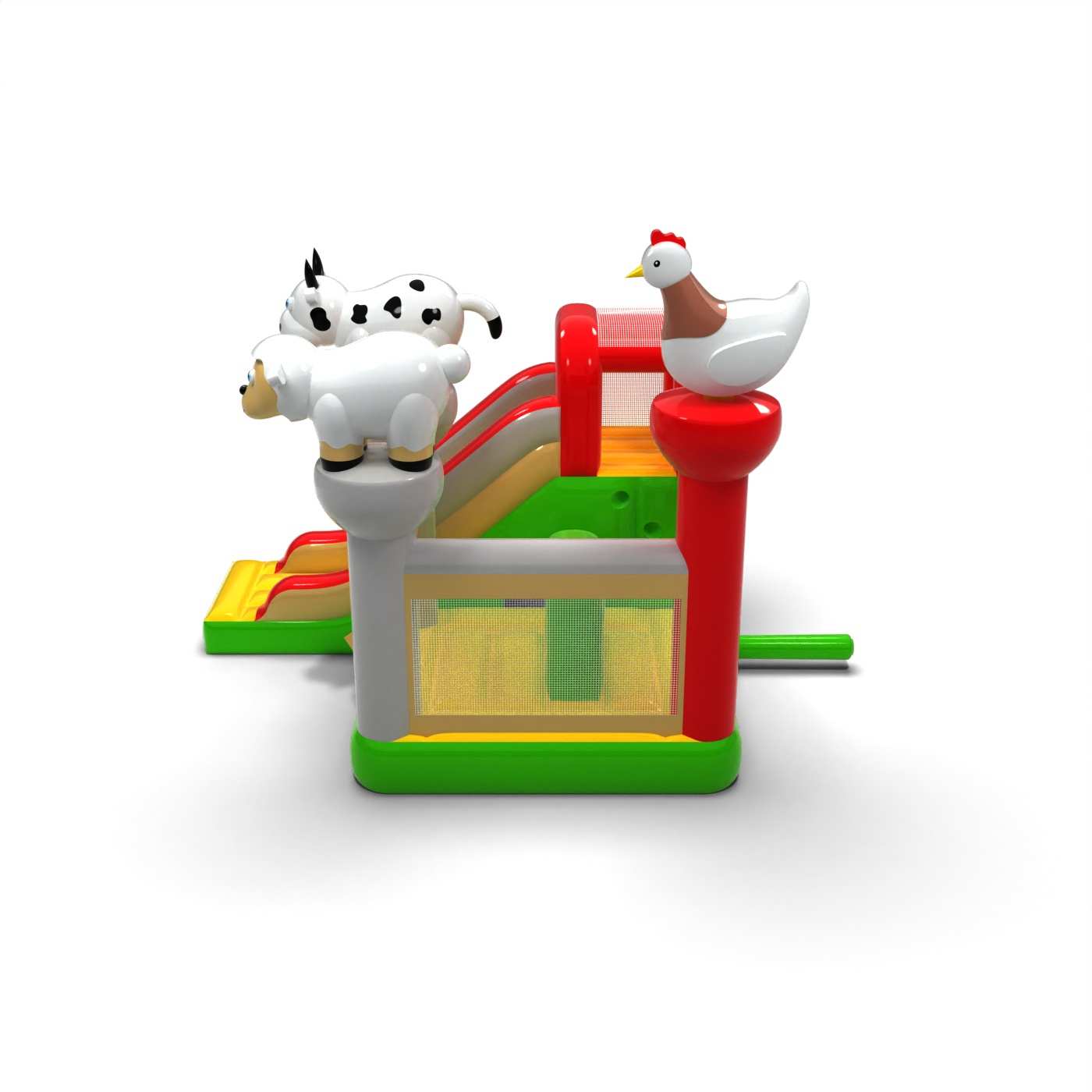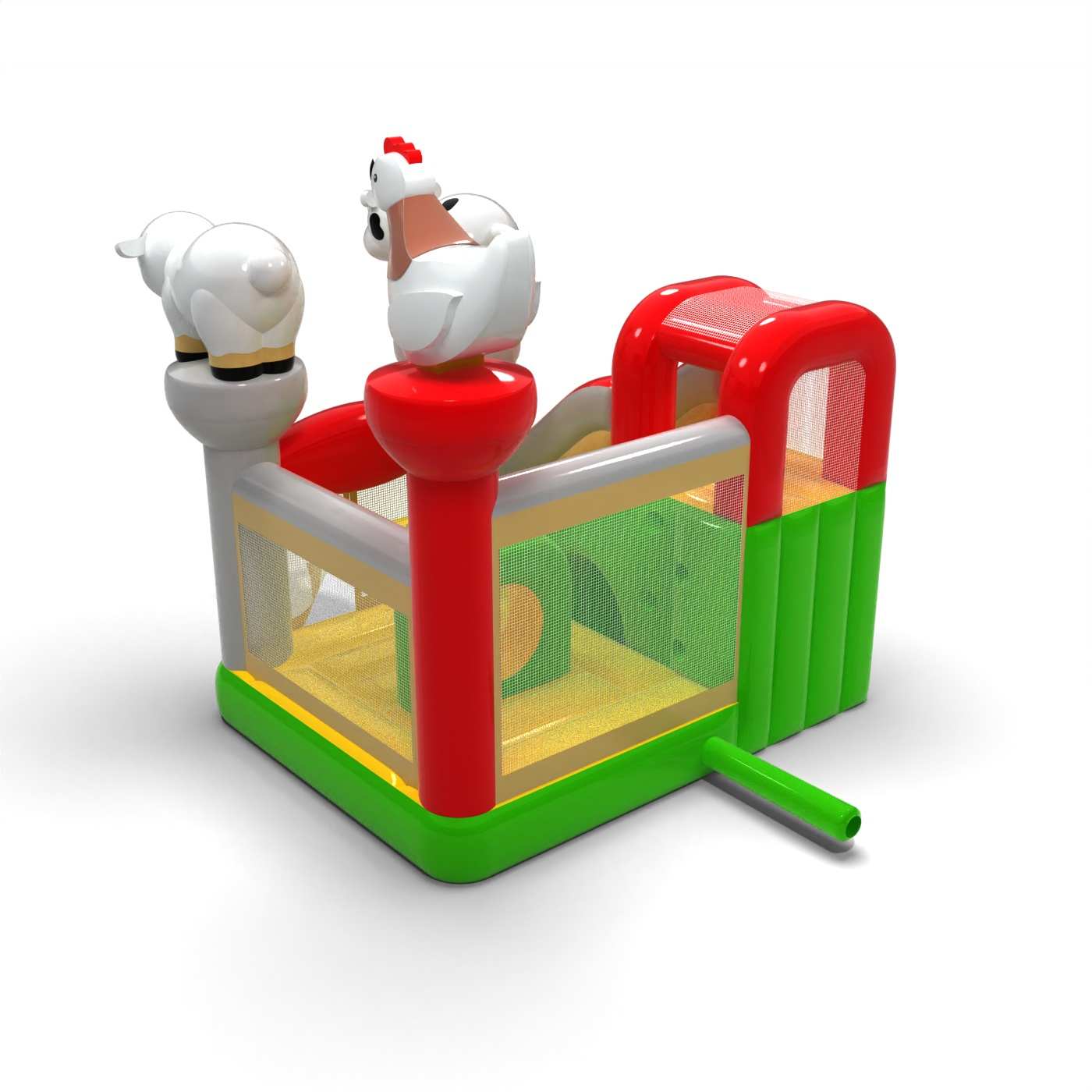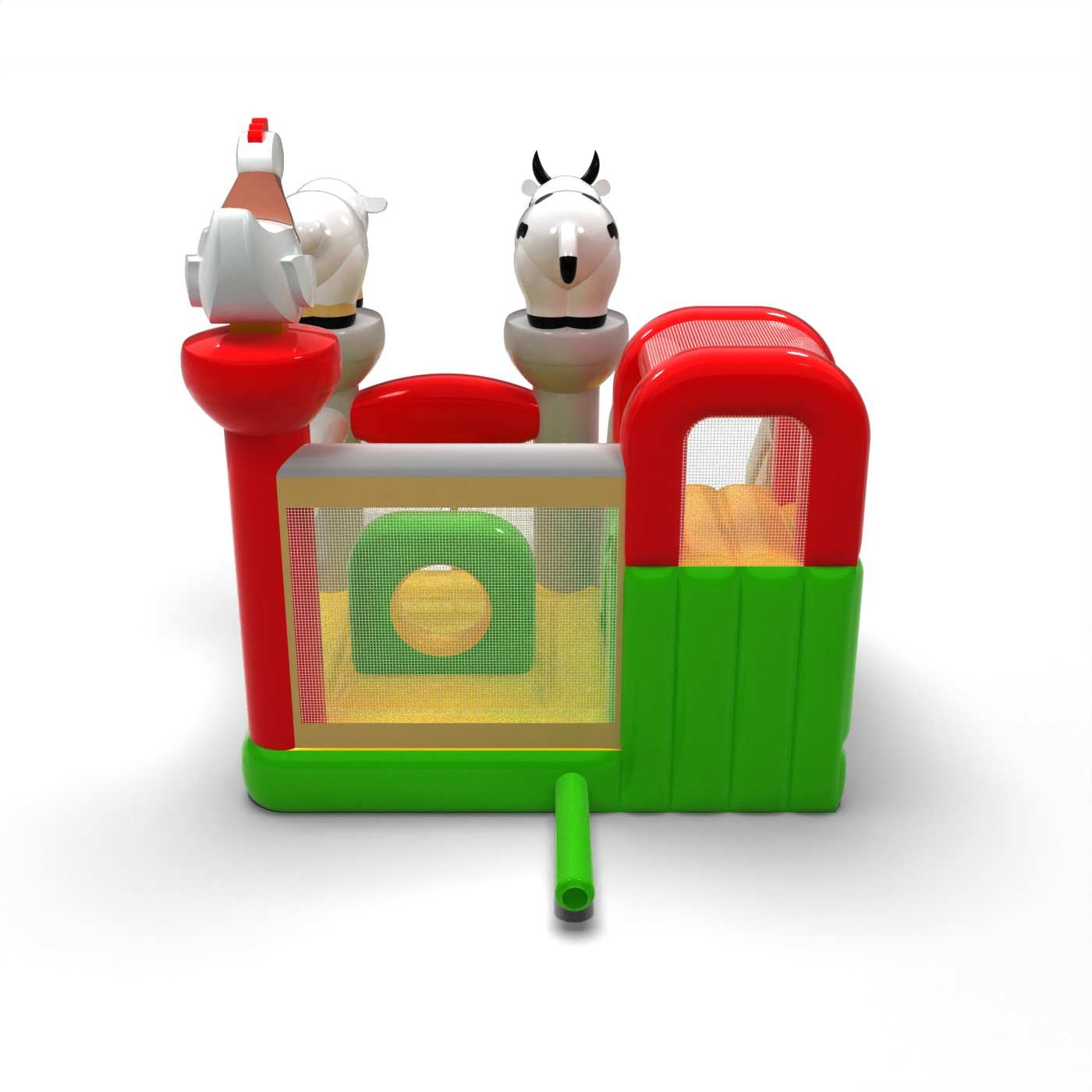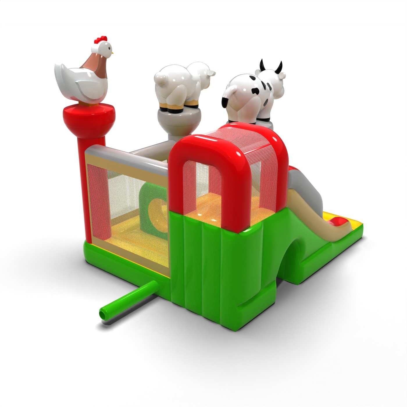 L'atmosphère fermière et le design convivial donnent à cette attraction un caractère familial et décontracté. La combinaison d'un château gonflable et d'un toboggan offre aux enfants une variété d'activités et une rotation naturelle pendant le jeu. L'esthétique inspirée de la campagne crée une atmosphère chaleureuse et s'accorde bien avec les événements en plein air. C'est une option pratique pour les sociétés de location qui organisent des festivals et des pique-niques à caractère familial. La structure gonflable conviendra parfaitement aux événements où il est important que les enfants s'amusent en toute sécurité et que l'atmosphère soit douce.