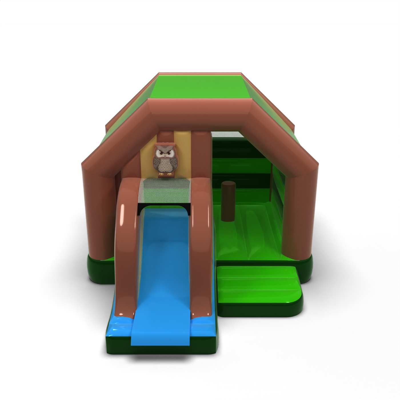 Comme toutes nos attractions gonflables, le produit est fabriqué à partir de matériaux de haute qualité, en l'occurrence un PVC de nouvelle génération très résistant à la déchirure. Forester's lodge - toboggan gonflable a des dimensions 3,9 m, 4,9 m, 3,2 m. Conforme à la norme de sécurité EN 14960 pour les équipements de jeux gonflables. Nous recommandons l'utilisation de structures gonflables pour la structure gonflable, que nous ajoutons à l'ensemble. Comme la plupart de nos attractions, la structure gonflable est garantie deux ans. Chez Gangaru, nous veillons à ce que vous ayez le moins de choses à faire : nous fournissons un ensemble complet d'accessoires nécessaires à la fixation de l'attraction (cordes, piquets) dans l'emballage de la structure gonflable. La sécurité de la structure gonflable a été contrôlée par un évaluateur indépendant.