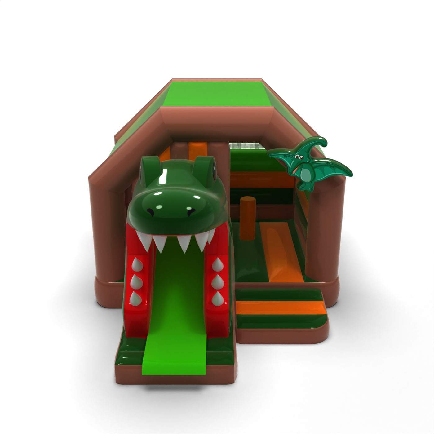 La forme de la gueule ouverte du dinosaure crée un effet visuel puissant et aventureux qui capte immédiatement l'attention des participants à l'événement. Le toboggan guidé à travers la gueule renforce l'excitation du jeu et donne aux enfants le sentiment de participer à une aventure jurassique. Le design tridimensionnel distinctif différencie l'attraction des toboggans classiques et la rend reconnaissable. Il s'agit d'un produit inhabituel pour les sociétés de location qui recherchent quelque chose qui différencie réellement leur offre des structures gonflables standard. L'attraction est idéale pour les festivals, les événements à thème et les grands événements en plein air où le spectaculaire et un fort impact visuel sont essentiels.