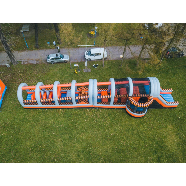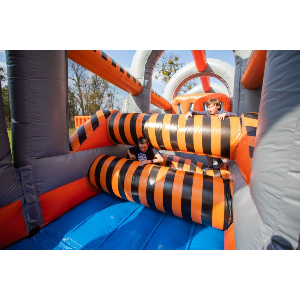Course d'obstacles gonflable "CrashRunner" - 24m s'adresse à presque tous ceux qui aiment s'amuser tout en participant à des compétitions. La course d'obstacles gonflable est conçue principalement pour les jeunes et les adultes, mais convient également aux enfants à partir de 6 ans. Presque tout le monde trouvera des éléments de plaisir dans cette attraction. Nous dédions ce produit à tous ceux qui veulent retrouver leur esprit de compétition pendant les heures de jeu en plein air. Les attractions de cette série peuvent comporter de nombreux éléments plus ou moins difficiles à surmonter. Grimper le long d'un mur, glisser rapidement pour finalement ramper entre des éléments saillants qui rendent difficile l'accomplissement du parcours le plus rapidement possible.