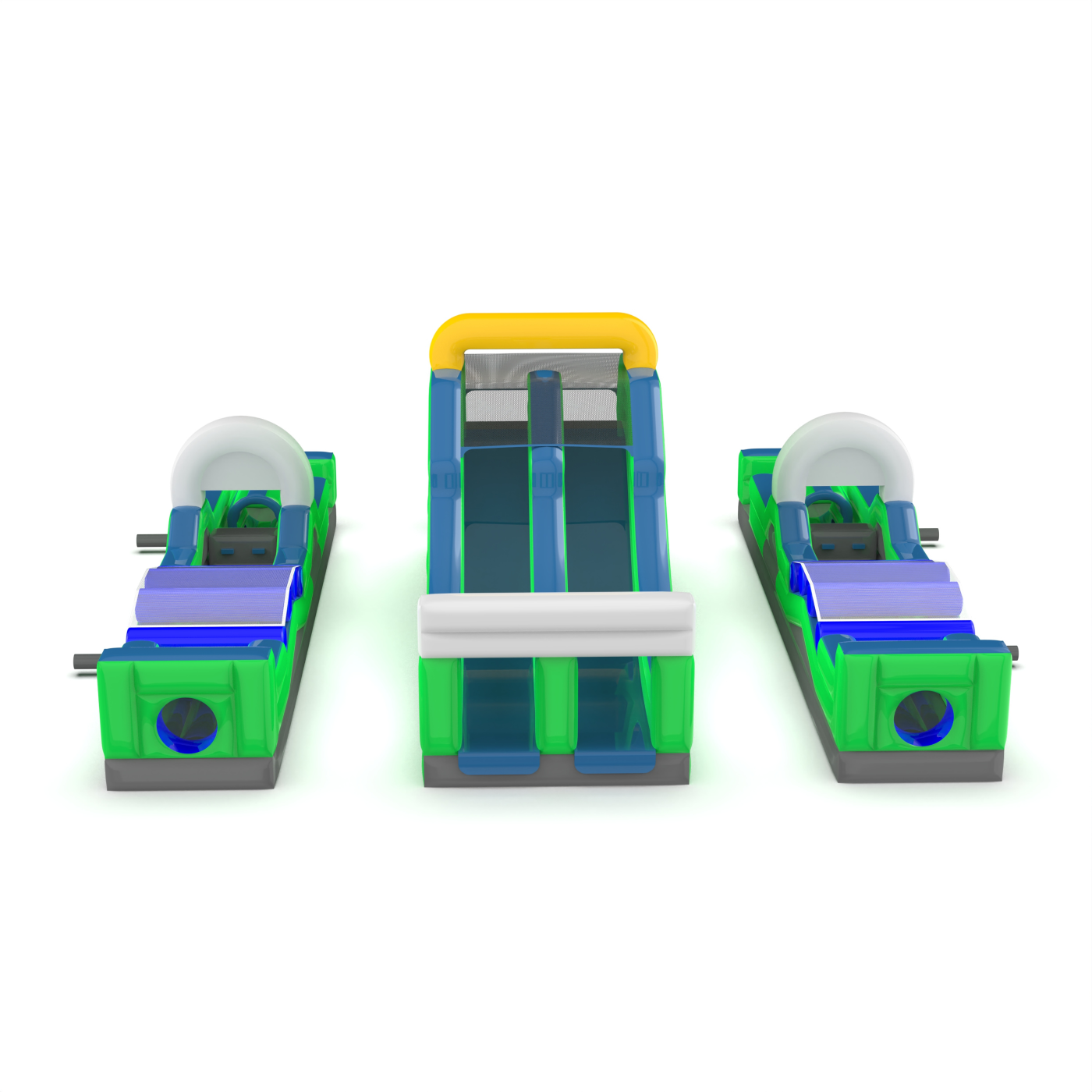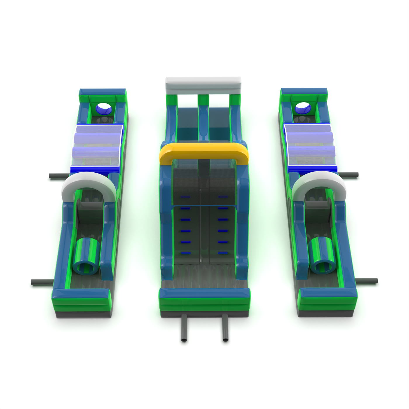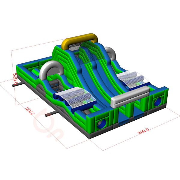 Le double parcours d'obstacles gonflables est une attraction de grande envergure qui procure aux participants de l'adrénaline et de la compétition. Avec une variété d'obstacles tels que des toboggans et des murs d'escalade, cette course garantit beaucoup d'excitation et de plaisir pour les enfants et les adultes. Idéal pour les festivals, les événements d'entreprise et les événements en plein air.