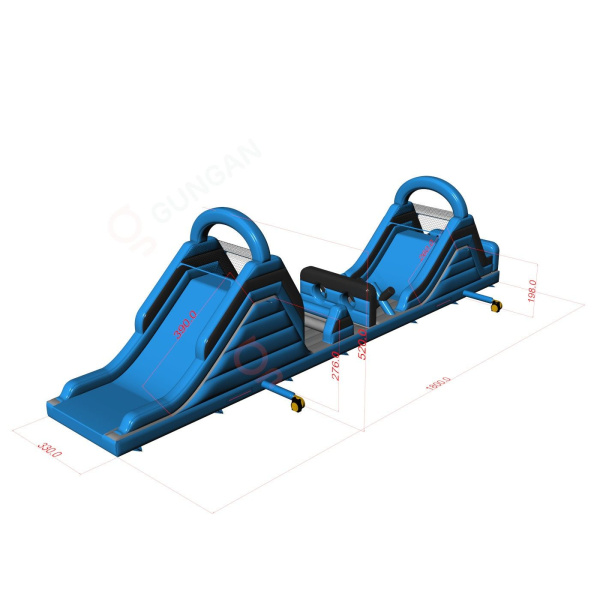 Les parcours d'obstacles gonflables peuvent être reliés les uns aux autres à l'aide de Velcro, ce qui vous permet d'offrir à vous-même et à d'autres une grande quantité d'excitation pendant une longue fête. Les attractions de ce type dans notre gamme comprennent également des toboggans et des obstacles supplémentaires tels que des murs d'escalade. En outre, les parcours d'obstacles gonflables peuvent être complétés par des barres transversales et des poteaux gonflables qui sortent du plafond et du sol pour rendre le passage plus difficile et ralentir les joueurs. L'attraction peut servir de place pour une compétition saine et intéressante. Ce type de jeu apporte beaucoup de plaisir et d'énergie positive.