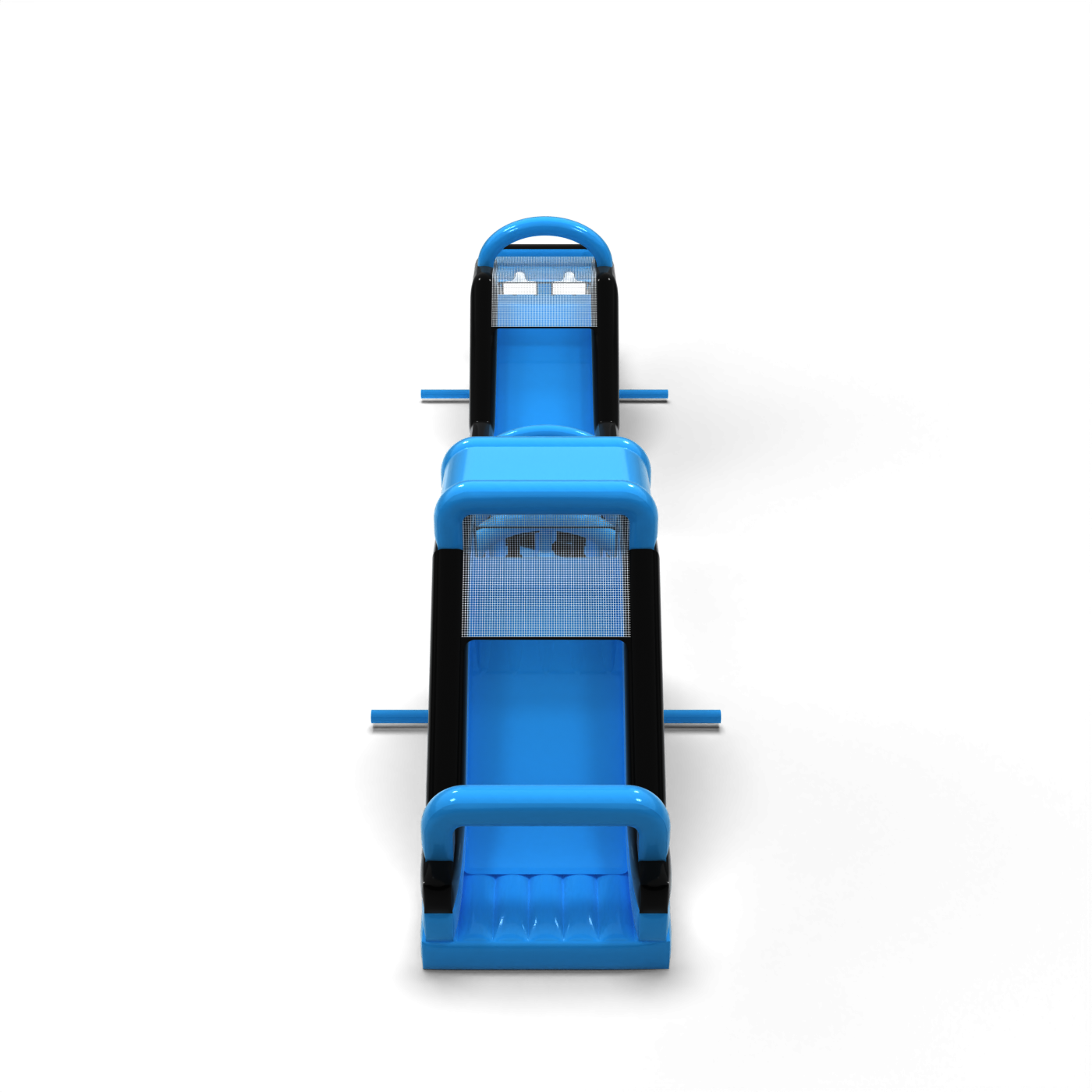 Course d'obstacles gonflable "CrashKader" Bleu - 22.5m s'adresse à presque tous ceux qui aiment s'amuser tout en participant à des compétitions. La course d'obstacles gonflable est conçue principalement pour les jeunes et les adultes, mais convient également aux enfants à partir de 6 ans. Presque tout le monde trouvera des éléments de plaisir dans cette attraction. Nous dédions ce produit à tous ceux qui veulent retrouver leur esprit de compétition pendant les heures de jeu en plein air. Les attractions de cette série peuvent comporter de nombreux éléments plus ou moins difficiles à surmonter. Grimper le long d'un mur, glisser rapidement pour finalement ramper entre des éléments saillants qui rendent difficile l'accomplissement du parcours le plus rapidement possible.