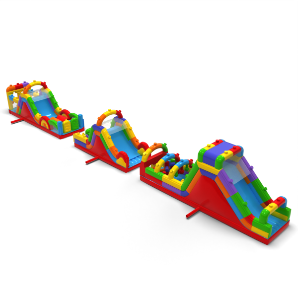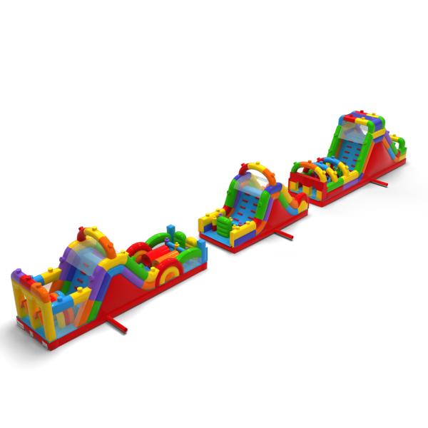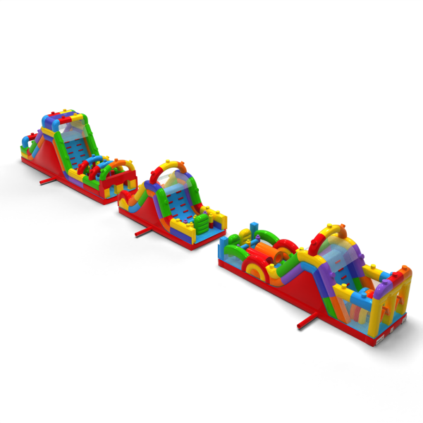 Course d'obstacles gonflable Blocs de couleur - 30m
