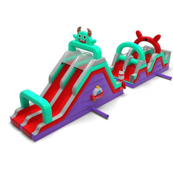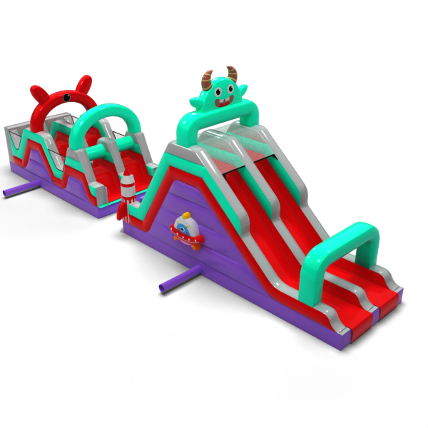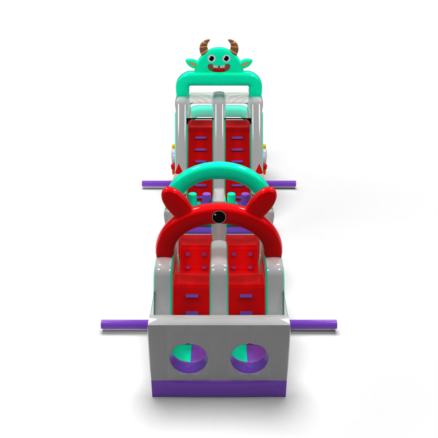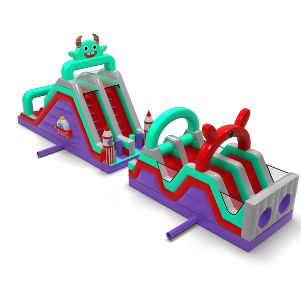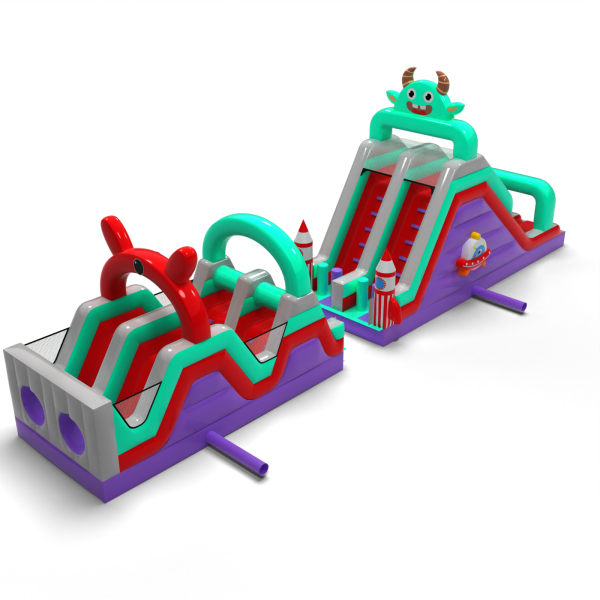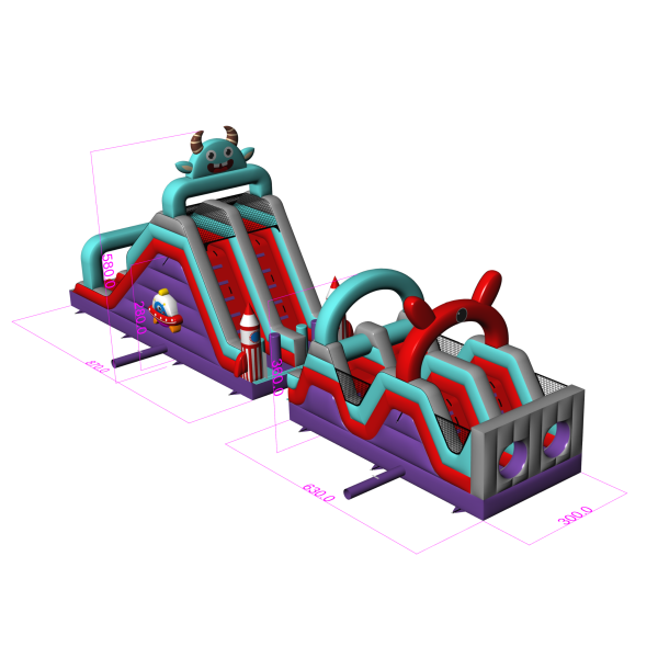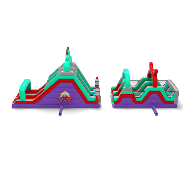 La piste gonflable de 15 mètres de long est une attraction compacte pour les enfants sur le thème moderne de l'espace. Les graphismes colorés, les décorations en 3D et les détails sympathiques attirent l'attention et conviennent à différents types d'événements en plein air. La conception comprend des obstacles accessibles et un seul toboggan, ce qui la rend facile à utiliser et peu encombrante. Il conviendra aussi bien à des événements intimes qu'à des aires de jeux plus vastes.