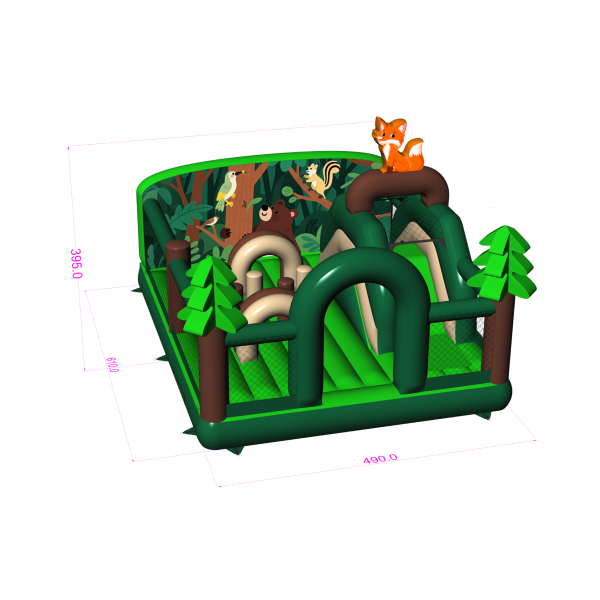 Aire de jeux gonflable 6x5 sur le thème de la forêt est principalement destiné aux enfants qui recherchent une aventure tout en jouant avec leurs amis et leurs camarades. L'aire de jeux gonflable est clôturée et souple et peut donc être utilisée en toute sécurité. Elle se compose généralement d'un grand toboggan et d'un petit toboggan, ce qui permet aux enfants de tous âges de s'y amuser. Aire de jeux gonflable 6x5 sur le thème de la forêt convient parfaitement aux pique-niques familiaux, aux activités de renforcement de l'esprit d'équipe, aux événements pour les employés ou à tout autre type d'événement - en plein air et ailleurs. Les aires de jeux gonflables sont une excellente alternative aux structures gonflables plus grandes et plus exigeantes. Nous recommandons particulièrement cette attraction pour les entreprises en phase de démarrage.