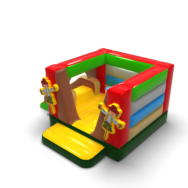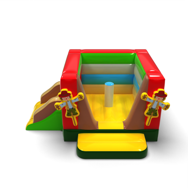 Petit château gonflable avec toboggan - sur le thème de la ferme