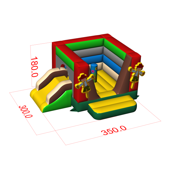 Comme toutes nos attractions gonflables, le produit est fabriqué à partir de matériaux de haute qualité, en l'occurrence un PVC de nouvelle génération très résistant à la déchirure. Petit château gonflable avec toboggan - sur le thème de la ferme a 3 m x 3,5 m x 1,8 m (longueur, largeur et hauteur). Conforme à la norme de sécurité EN 14960 pour les équipements de jeux gonflables. Nous recommandons l'utilisation de structures gonflables pour la structure gonflable, que nous ajoutons à l'ensemble. Comme la plupart de nos attractions, la structure gonflable est garantie deux ans. Chez Gangaru, nous veillons à ce que vous ayez le moins de travail possible. Nous fournissons un ensemble complet d'accessoires nécessaires à la fixation de l'attraction (cordes, piquets) dans l'emballage de la structure gonflable. La sécurité de la structure gonflable a été vérifiée par un évaluateur indépendant.