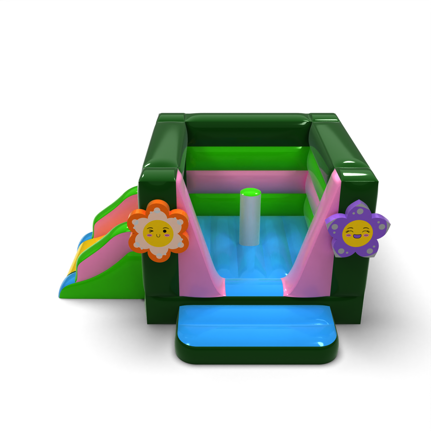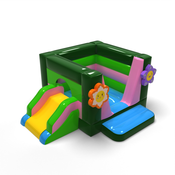 Petit château gonflable avec toboggan - sur le thème du printemps