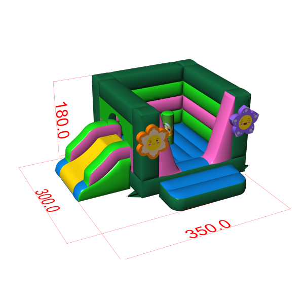 Comme toutes nos attractions gonflables, le produit est fabriqué à partir de matériaux de haute qualité, en l'occurrence un PVC de nouvelle génération très résistant à la déchirure. Petit château gonflable avec toboggan - sur le thème du printemps a 3 m x 3,5 m x 1,8 m (longueur, largeur et hauteur). Conforme à la norme de sécurité EN 14960 pour les équipements de jeux gonflables. Nous recommandons l'utilisation de structures gonflables pour la structure gonflable, que nous ajoutons à l'ensemble. Comme la plupart de nos attractions, la structure gonflable est garantie deux ans. Chez Gangaru, nous veillons à ce que vous ayez le moins de travail possible. Nous fournissons un ensemble complet d'accessoires nécessaires à la fixation de l'attraction (cordes, piquets) dans l'emballage de la structure gonflable. La sécurité de la structure gonflable a été vérifiée par un évaluateur indépendant.