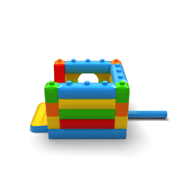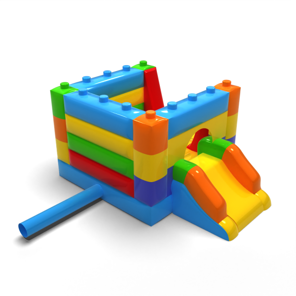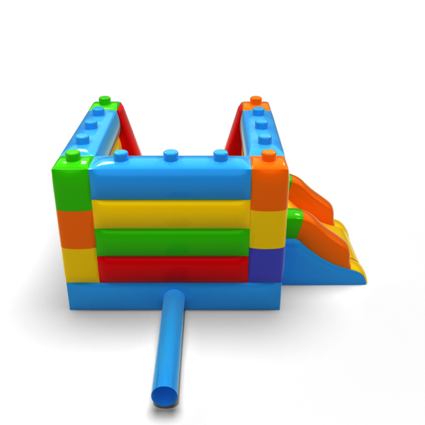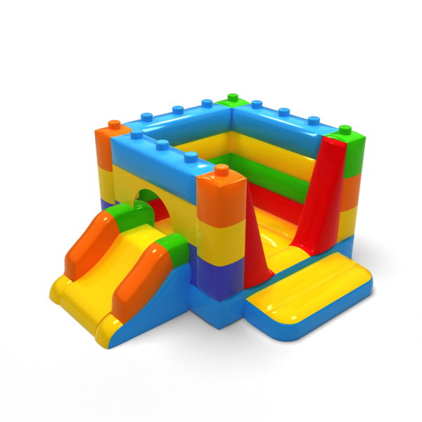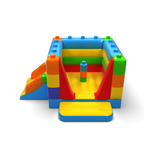 Petit château gonflable fermé avec toboggan - dans un motif de blocs colorés
