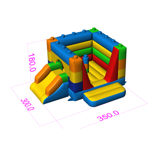 Comme toutes nos attractions gonflables, le produit est fabriqué à partir de matériaux de haute qualité, en l'occurrence un PVC de nouvelle génération très résistant à la déchirure. Petit château gonflable fermé avec toboggan - dans un motif de blocs colorés a 3 m x 3,5 m x 1,8 m (longueur, largeur et hauteur). Conforme à la norme de sécurité EN 14960 pour les équipements de jeux gonflables. Nous recommandons l'utilisation de structures gonflables pour la structure gonflable, que nous ajoutons à l'ensemble. Comme la plupart de nos attractions, la structure gonflable est garantie deux ans. Chez Gangaru, nous veillons à ce que vous ayez le moins de travail possible. Nous fournissons un ensemble complet d'accessoires nécessaires à la fixation de l'attraction (cordes, piquets) dans l'emballage de la structure gonflable. La sécurité de la structure gonflable a été vérifiée par un évaluateur indépendant.