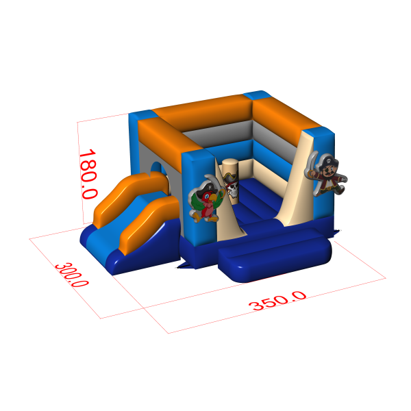 Comme toutes nos attractions gonflables, le produit est fabriqué à partir de matériaux de haute qualité, en l'occurrence un PVC de nouvelle génération très résistant à la déchirure. Petit château gonflable avec toboggan - sur le thème des pirates a 3 m x 3,5 m x 1,8 m (longueur, largeur et hauteur). Conforme à la norme de sécurité EN 14960 pour les équipements de jeux gonflables. Nous recommandons l'utilisation de structures gonflables pour la structure gonflable, que nous ajoutons à l'ensemble. Comme la plupart de nos attractions, la structure gonflable est garantie deux ans. Chez Gangaru, nous veillons à ce que vous ayez le moins de travail possible. Nous fournissons un ensemble complet d'accessoires nécessaires à la fixation de l'attraction (cordes, piquets) dans l'emballage de la structure gonflable. La sécurité de la structure gonflable a été vérifiée par un évaluateur indépendant.