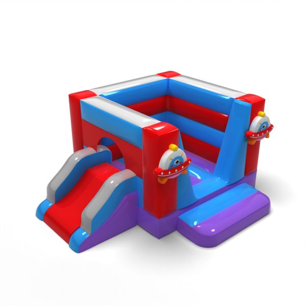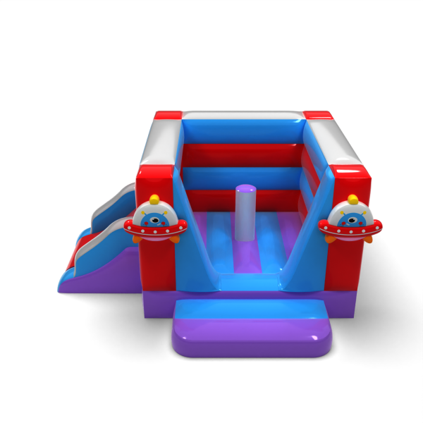 La version du château gonflable de l'espace avec toboggan est une attraction supplémentaire qui prolonge le temps de jeu et encourage l'activité physique. Les éléments colorés et les motifs de soucoupe volante créent une atmosphère accueillante, et la taille compacte permet de l'installer aussi bien à l'extérieur qu'à l'intérieur. Il s'agit d'une solution pratique pour l'industrie HoReCa et les organisateurs d'événements qui souhaitent offrir aux enfants un espace de jeu attrayant et sûr. Il s'agit d'un point focal moderne qui peut être facilement adapté à différents scénarios d'événements.