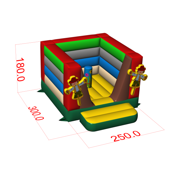 Comme toutes nos attractions gonflables, le produit est fabriqué à partir de matériaux de haute qualité, en l'occurrence un PVC de nouvelle génération très résistant à la déchirure. Petit château gonflable - sur le thème de la ferme a 3 m x 2,5 m x 1,8 m (longueur, largeur et hauteur). Conforme à la norme de sécurité EN 14960 pour les équipements de jeux gonflables. Nous recommandons l'utilisation de structures gonflables pour la structure gonflable, que nous ajoutons à l'ensemble. Comme la plupart de nos attractions, la structure gonflable est garantie deux ans. Chez Gangaru, nous veillons à ce que vous ayez le moins de travail possible. Nous fournissons un ensemble complet d'accessoires nécessaires à la fixation de l'attraction (cordes, piquets) dans l'emballage de la structure gonflable. La sécurité de la structure gonflable a été vérifiée par un évaluateur indépendant.
