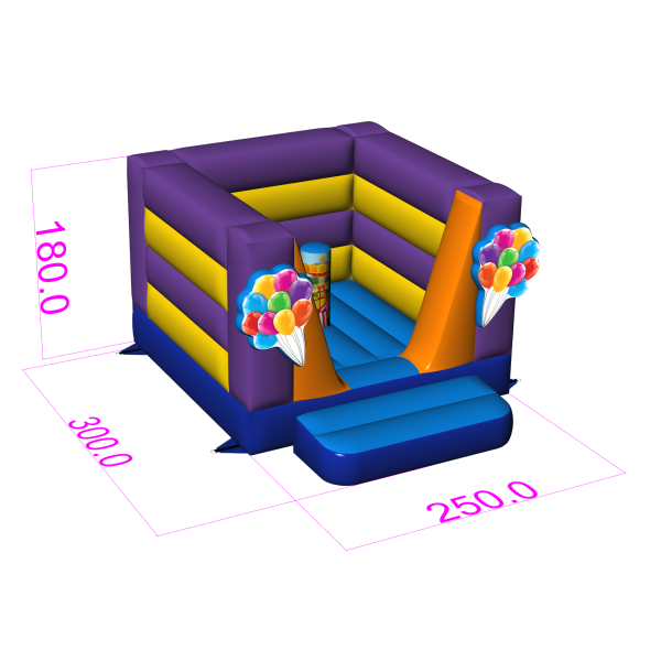 Comme toutes nos attractions gonflables, le produit est fabriqué à partir de matériaux de haute qualité, en l'occurrence un PVC de nouvelle génération très résistant à la déchirure. Petit château gonflable - sur le thème du parc d'attractions a 3 m x 2,5 m x 1,8 m (longueur, largeur et hauteur). Conforme à la norme de sécurité EN 14960 pour les équipements de jeux gonflables. Nous recommandons l'utilisation de structures gonflables pour la structure gonflable, que nous ajoutons à l'ensemble. Comme la plupart de nos attractions, la structure gonflable est garantie deux ans. Chez Gangaru, nous veillons à ce que vous ayez le moins de travail possible. Nous fournissons un ensemble complet d'accessoires nécessaires à la fixation de l'attraction (cordes, piquets) dans l'emballage de la structure gonflable. La sécurité de la structure gonflable a été vérifiée par un évaluateur indépendant.