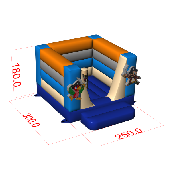Comme toutes nos attractions gonflables, le produit est fabriqué à partir de matériaux de haute qualité, en l'occurrence un PVC de nouvelle génération très résistant à la déchirure. Petit château gonflable - sur le thème des pirates a 3 m x 2,5 m x 1,8 m (longueur, largeur et hauteur). Conforme à la norme de sécurité EN 14960 pour les équipements de jeux gonflables. Nous recommandons l'utilisation de structures gonflables pour la structure gonflable, que nous ajoutons à l'ensemble. Comme la plupart de nos attractions, la structure gonflable est garantie deux ans. Chez Gangaru, nous veillons à ce que vous ayez le moins de travail possible. Nous fournissons un ensemble complet d'accessoires nécessaires à la fixation de l'attraction (cordes, piquets) dans l'emballage de la structure gonflable. La sécurité de la structure gonflable a été vérifiée par un évaluateur indépendant.