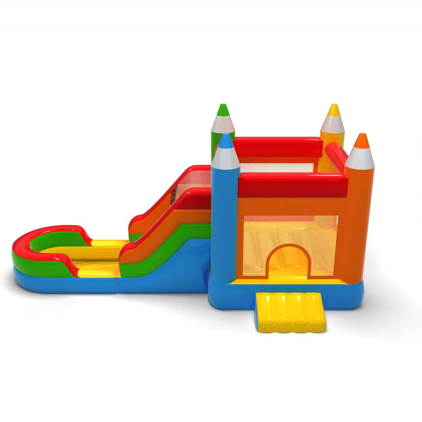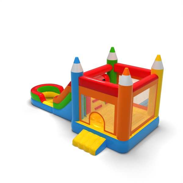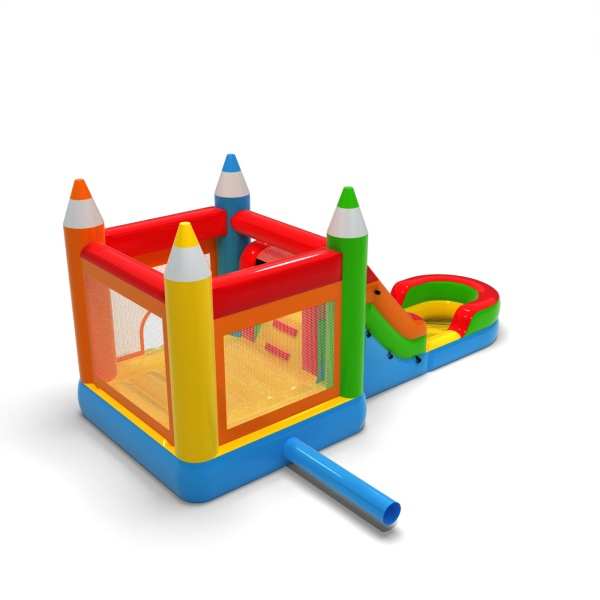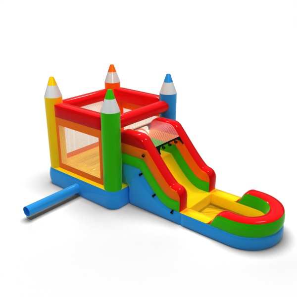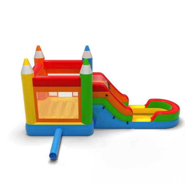 Toboggan aquatique avec château gonflable en crayon