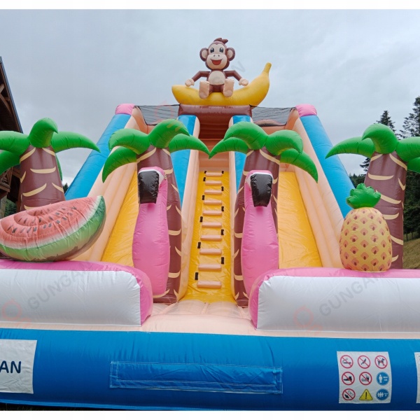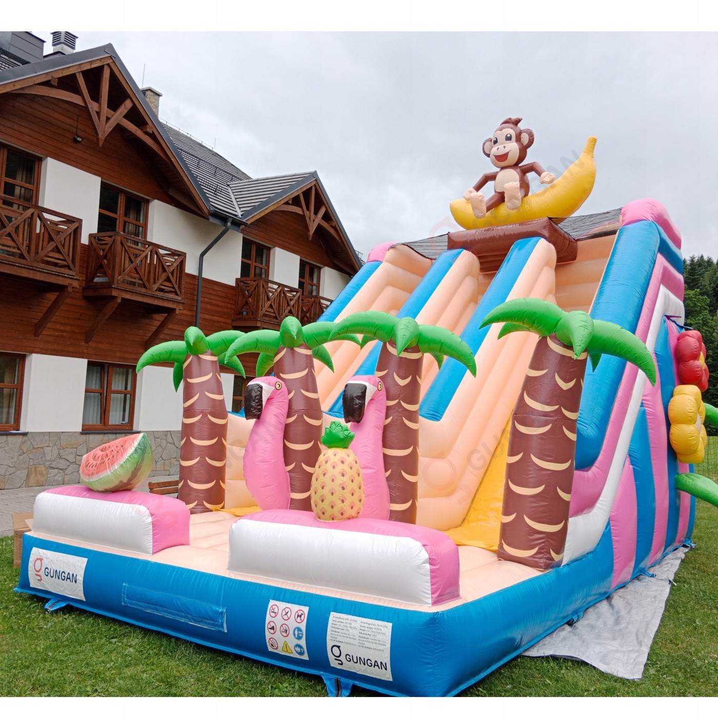 Double toboggan gonflable à thème hawaïen est un gonflable fantastique pour les enfants et les jeunes. Il sera parfait dans un ensemble avec nos autres attractions dans différents thèmes. Double toboggan gonflable à thème hawaïen suscite l'intérêt des enfants dès qu'il est en vue. Les plus jeunes participants aux événements aiment s'amuser, c'est pourquoi ce toboggan pourrait être l'une des structures gonflables les plus populaires de votre gamme. Les structures gonflables de cette catégorie attirent l'attention et sont généralement dotées de nombreuses décorations et d'éléments qui encouragent les enfants à sauter en plein air.