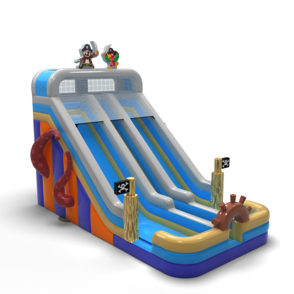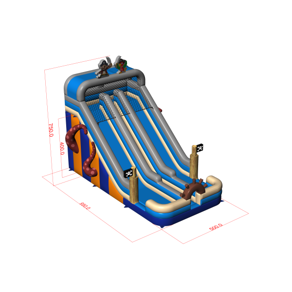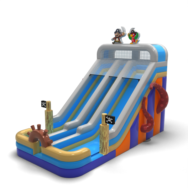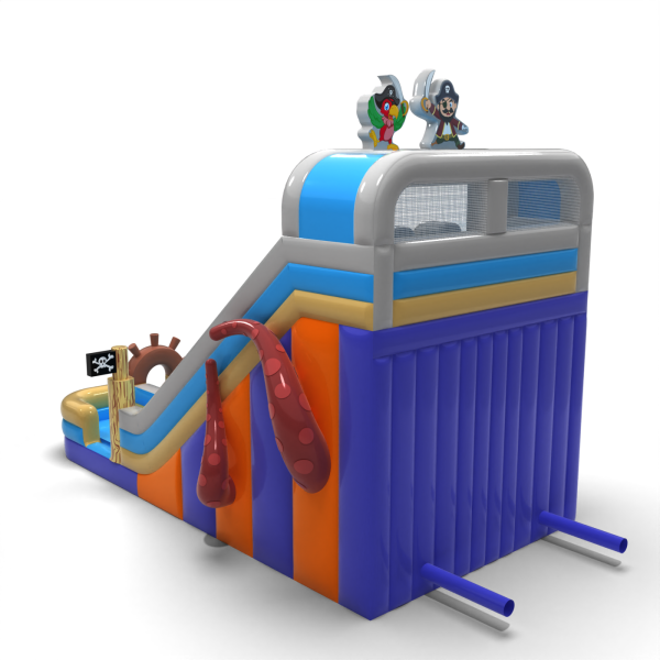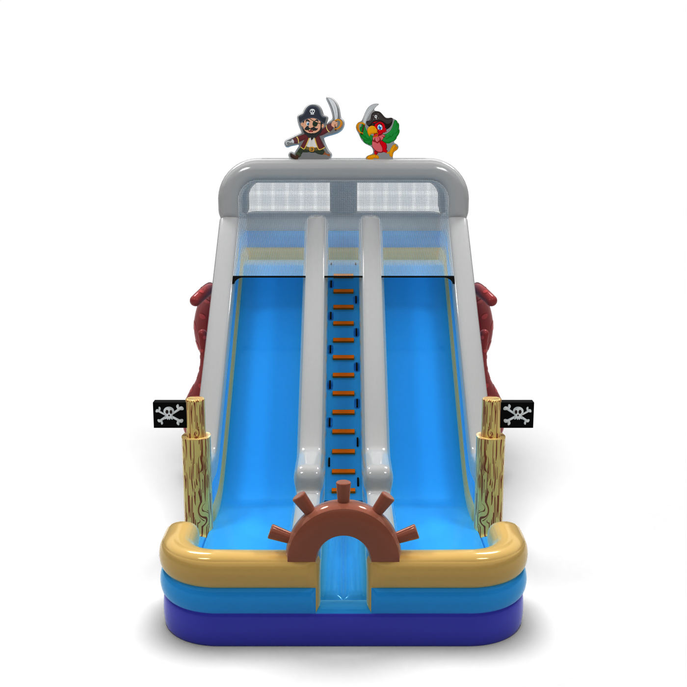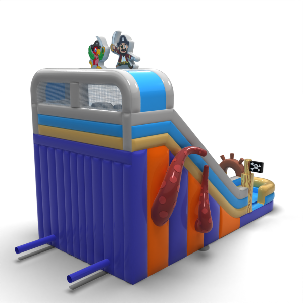 Toboggan gonflable doublement agrandi sur le thème des pirates